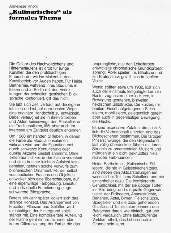 Kulinarisches als Thema 1984